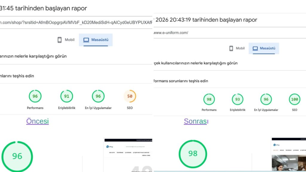 Bir e-ticaret sitesinin sadece güzel görünmesi yetmez; çalışması, taranması ve satması gerekir. E-Uniform projesinde devraldığım tablo; erişim sorunları, hatalı linkler ve güncelliğini yitirmiş bir ödeme altyapısıydı.